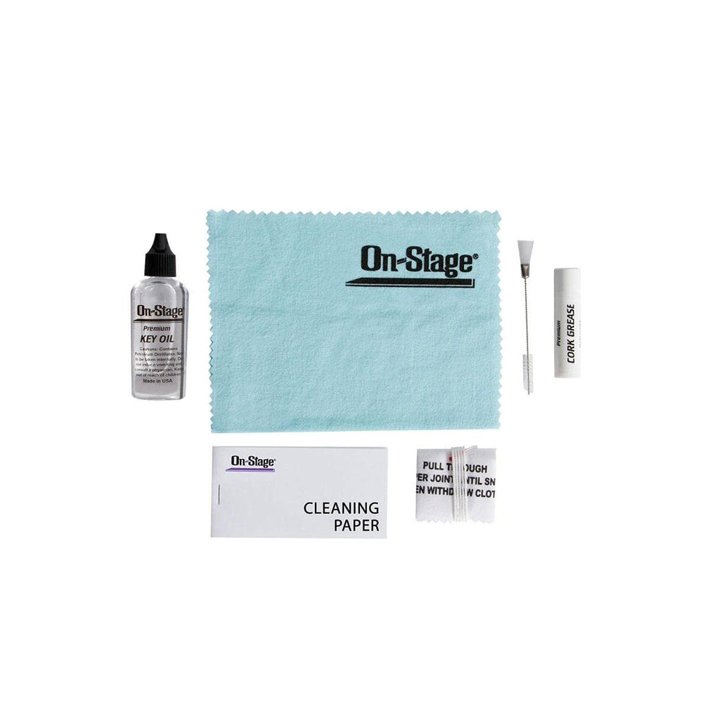 The kit includes Cork Grease, a Duster Brush, a Silver Polishing Cloth, Pad Paper, a Hanky Oboe Swab, Key Oil, and an Instruction Pamphlet.
