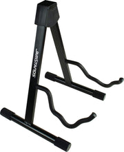 The stand is designed to support a wide range of guitars, typically accommodating guitars weighing up to approximately 15-20 pounds.