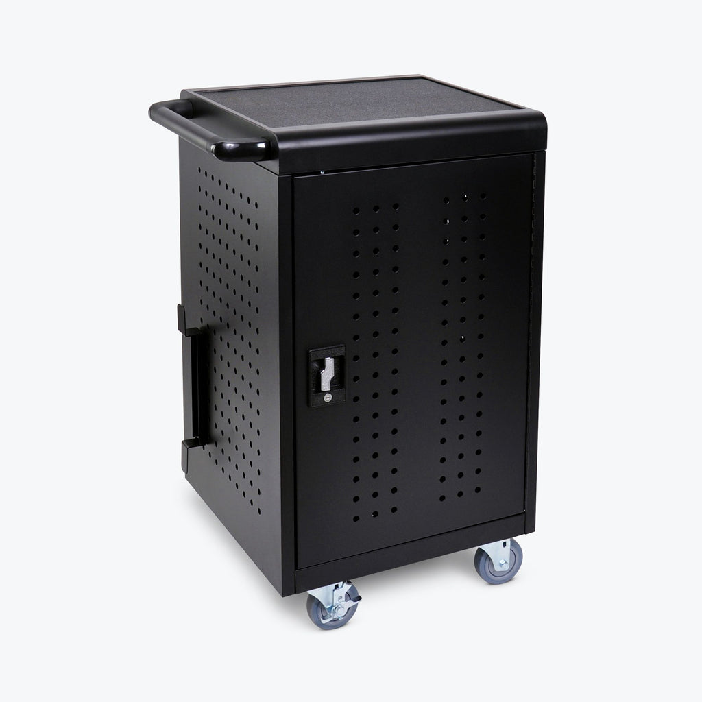 The Luxor LLTM30-B charging station is designed to charge up to 30 tablets or Chromebooks, accommodating 15 devices per shelf.
