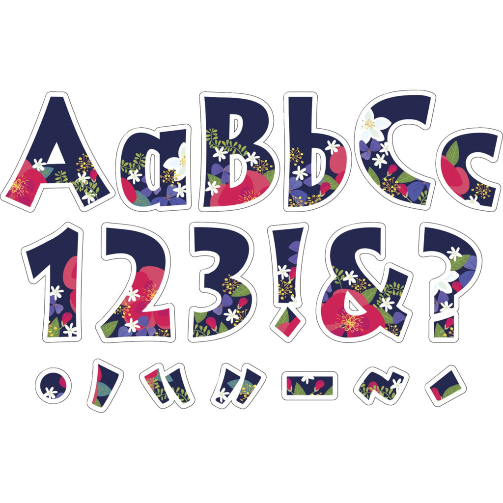 Barker Creek Letter Pop-Outs are colorful, 4-inch designer letters designed for use in bulletin boards, breakrooms, reception areas, and various displays. This set includes uppercase and lowercase letters, numbers, and punctuation marks.