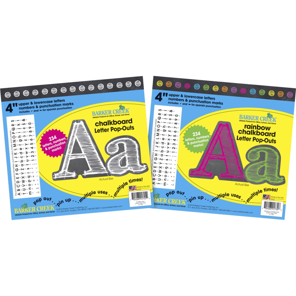 Barker Creek'S Chalkboard Letter Pop-Outs Will Make Your Bulletin Boards, Posters, And Displays Pop With Eye-Catching Style! Both Kids And Adults Will Enjoy Utilizing This Set Of 468 Upper And Lowercase Alphabet Letters, Numbers 0 To 9, And Common Punctuation Marks, Which Comes With 2 Designs (Black/White Chalk Style And Rainbow Chalk Style) For Endless Mix And Match Options. Spanish Letter Accents Are Also Included (Which Is Wonderful For Bilingual Language Education!). Rather Than Writing, Try These Cutouts For Your Next Project, Presentation, Or Poster. Search Barker Creek Chalkboard For Matching This Set With Other Barker Creek Chalkboard Items In The Collection. Made In The Usa.