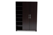 Stylish And Compact, The Marine Cabinet Is The Solution To Efficient Shoe Storage. Constructed From Engineered Wood, The Marine Showcases An Elegant Wenge Dark Brown Finish. Two Doors Conceal Six Shelves With Storage Space For Up To 12 Pairs Of Shoes. Additional Shoe Storage Is Provided By Seven Open Shelves. Circular Cut-Outs On The Back Of The Cabinet Enable Air Circulation And Prevent Mold Growth On Your Shoes. Silver Pvc Door Handles And Black Pvc Legs Complete The Look. The Marine Cabinet Is Made In Malaysia And Requires Assembly.
