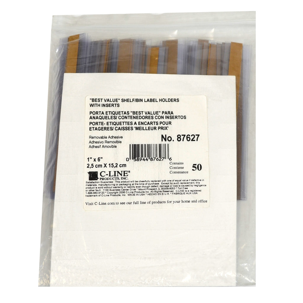 Best Value For Easy Labeling Of Shelves, Drawers, Files, Bins And More. Clear Plastic Holders Stick To Almost Any Clean, Flat Surface. Easy To Use Open-Edge, Top Loading Design. Removable And Repositionable. Includes Easy-To-Change Inserts. Can Be Easily Cut With Scissors To Required Length. 50/Pk.