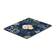 Blue Flowers Buff Poodle Mouse Pad, Hot Pad Or Trivet
