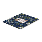 Blue Flowers English Bulldog Mouse Pad, Hot Pad Or Trivet