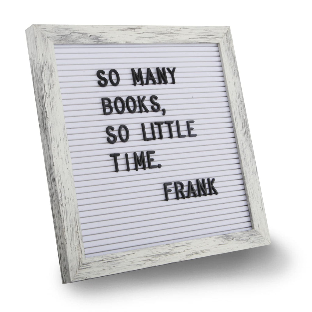 C Crystal Lemon Letter Board, 317 Pre-cut Letters Numbers & Symbols, Felt Letter Board, 10x10 inches, Changeable Wooden Message Board Sign, Wood Frame, Wall Mount, with Display Stand (Rustic White)