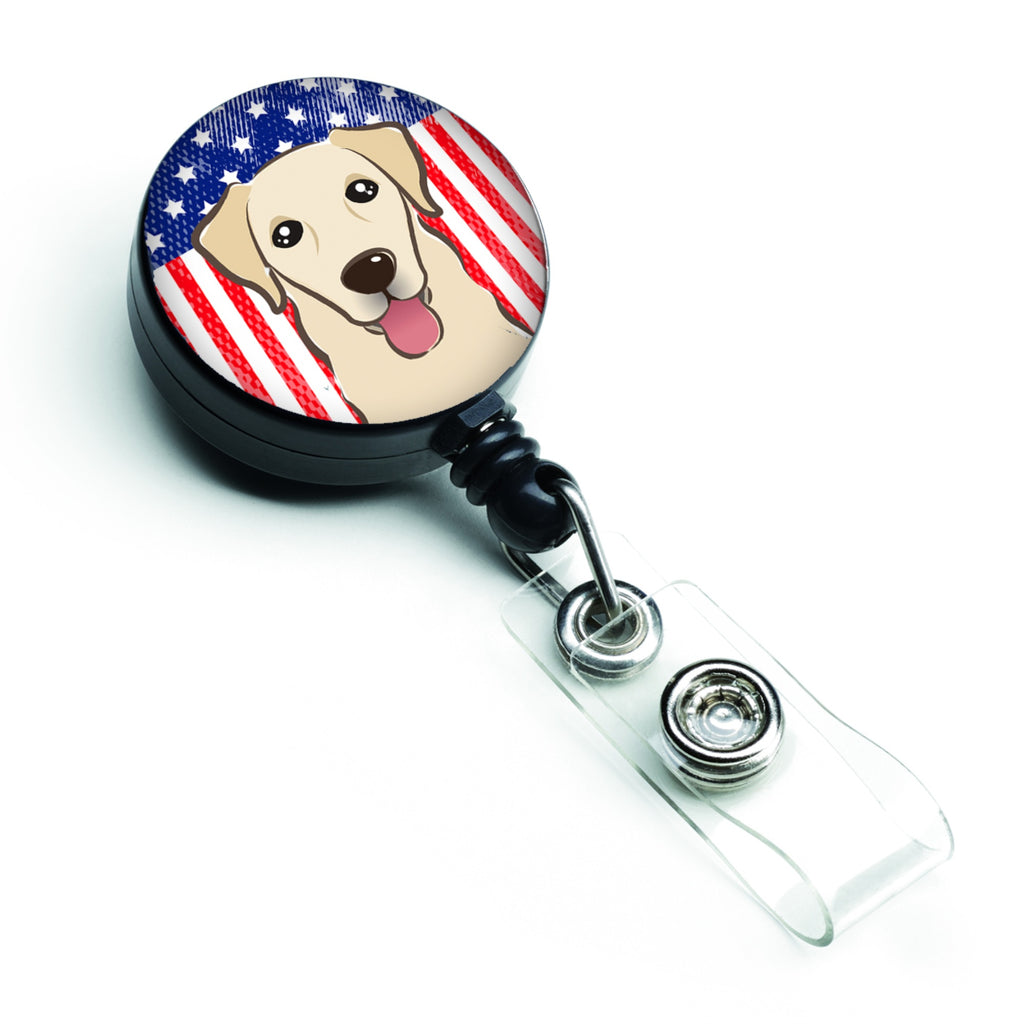 The badge reel is made from durable materials, including robust aluminum for the artwork and a poly material for the construction.