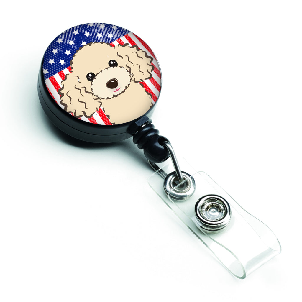 The badge reel is made of durable plastic, with artwork printed on aluminum and finished with a protective doming layer.