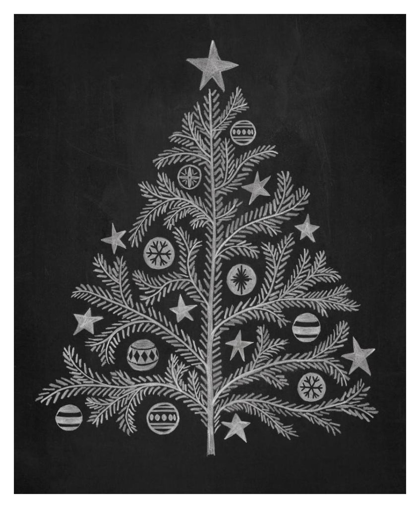 The chalkboard features a holiday trees theme, perfect for festive decorations and seasonal messages.