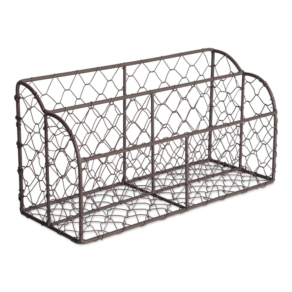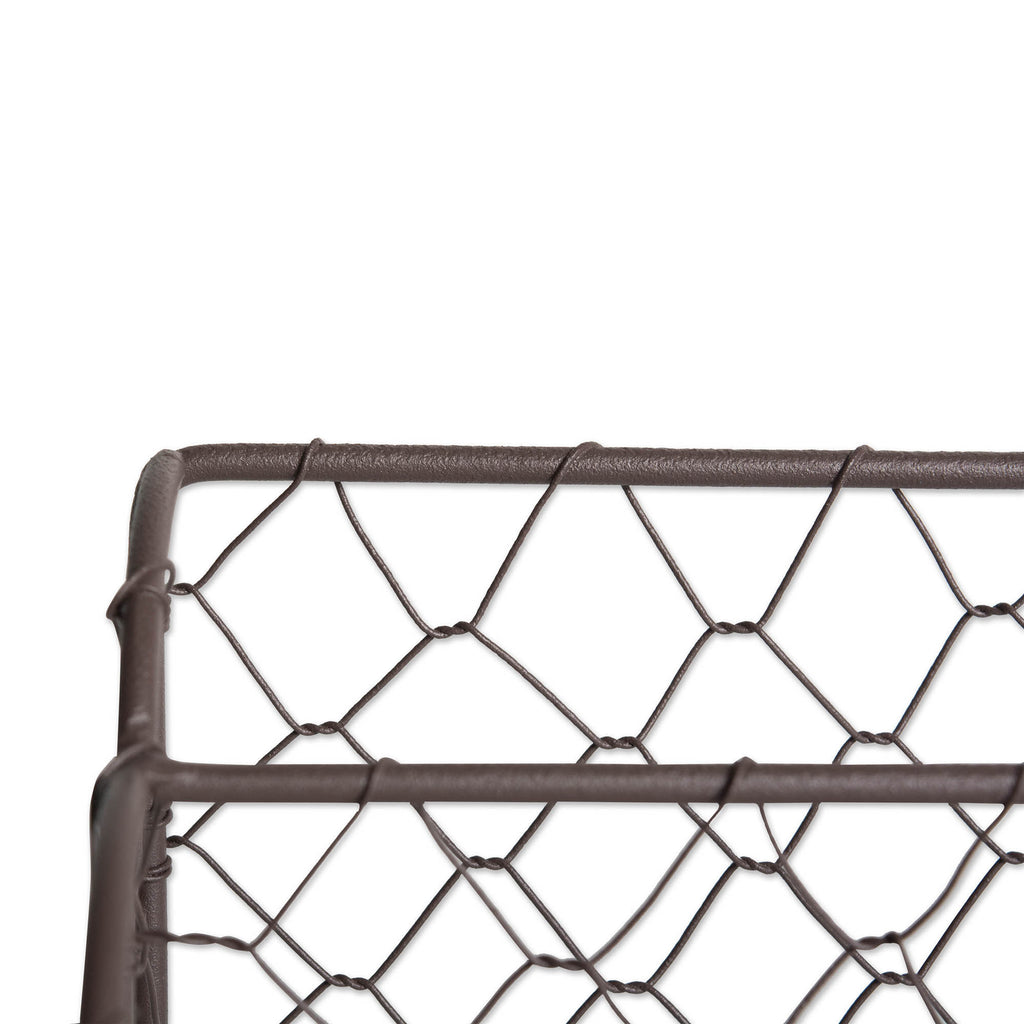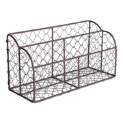 The letter holder is crafted from antiqued finish chicken coop metal wire, offering a vintage look along with a sturdy frame.