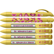 The Yellow Hearts Friend Pen set includes four rotating messages: 'True Friends', 'Understand & Care', 'Talking All Night', and 'Laughing All Day'.