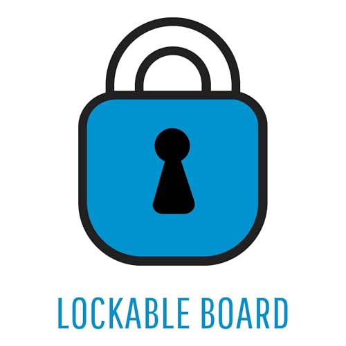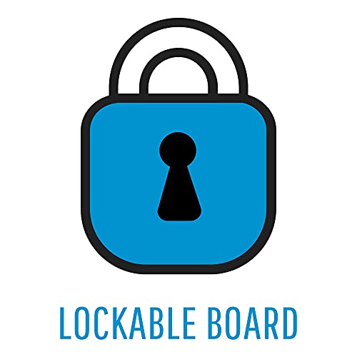 The bulletin board includes a locking mechanism with two keys to secure your displayed materials.