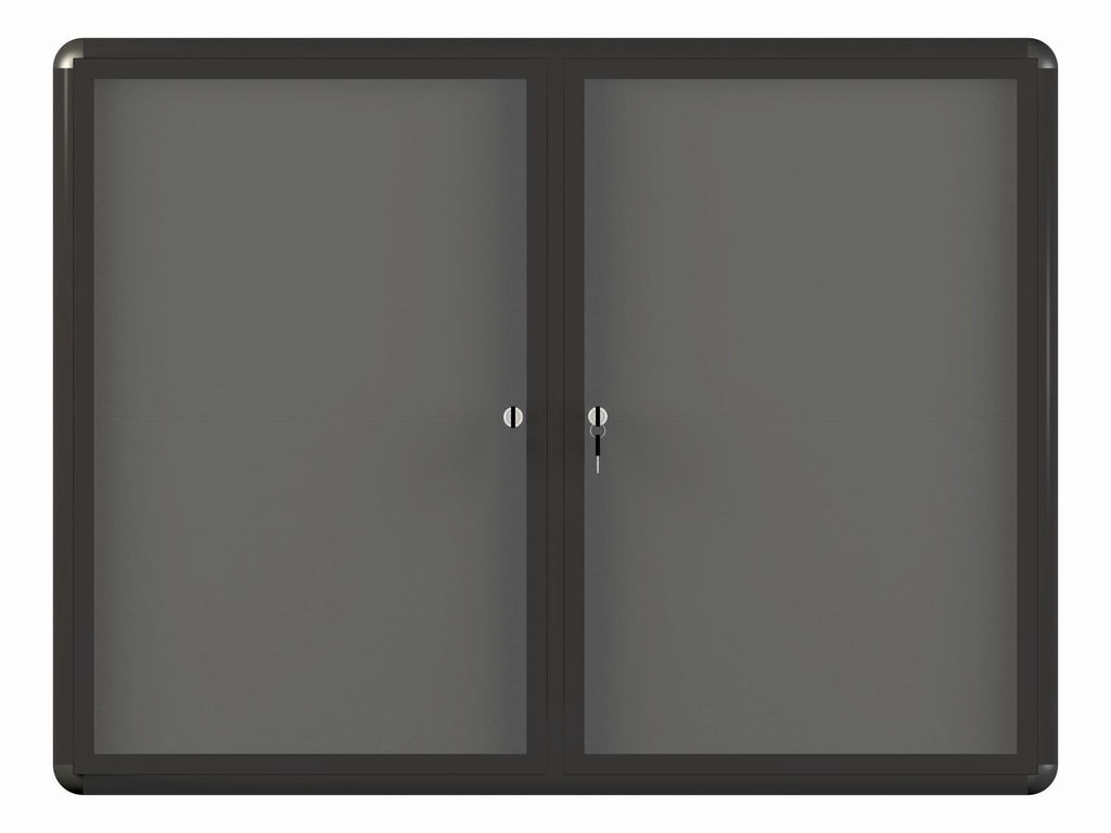 Grey Fabric Bulletin Enclosed Board Cabinet, Two Acrylic Swing Doors, 36 X 48, Graphite Aluminum Frame