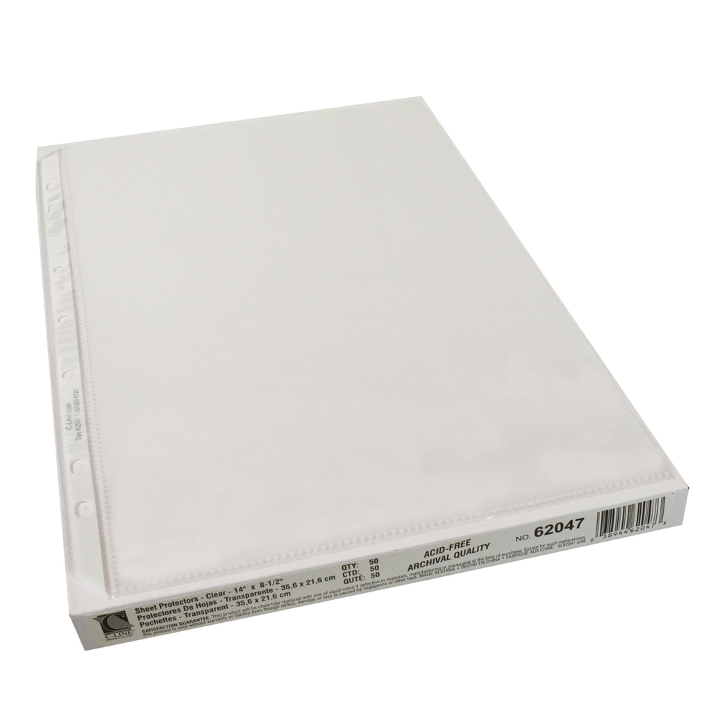 These sheet protectors are designed to hold legal-size documents measuring 14 x 8.5 inches.