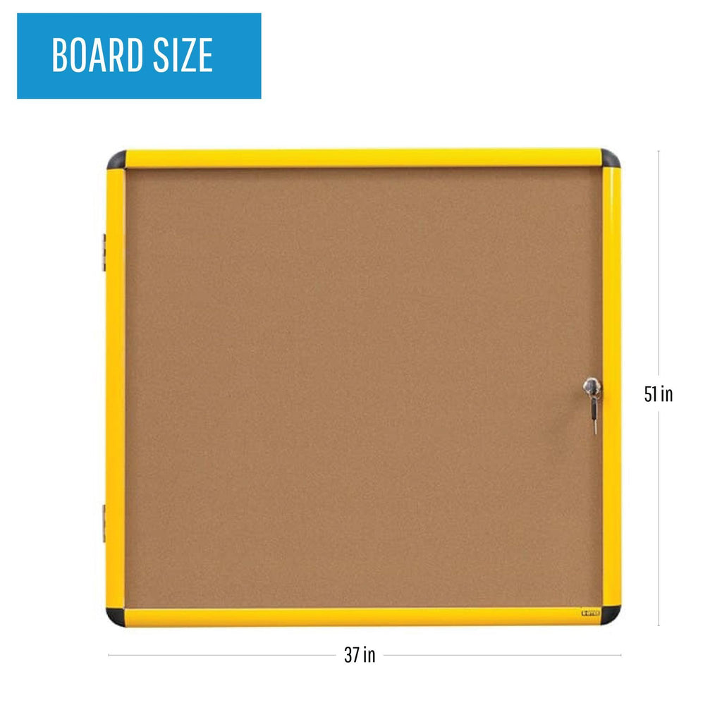 The dimensions of the MasterVision Industrial Enclosed Cork Board are 47 inches by 38 inches.