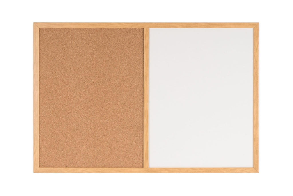 This Organizational Combo Board Features A Melamine Non Magnetic Dry Erase Surface As Well As A Self-Healing Cork Surface. You Have Plenty Of Space To Tack Up Notes And Make Lists, It'S The Perfect Solution For Staying Organized. Framed In Sturdy Wood Mdf With Oak Finish , It Has An Easy 4-Corner Mounting System That Can Be Positioned Either Vertically Or Horizontally - Offering Versatility When Reconfiguring A Workplace Or Where Wall Space Is Limited.
