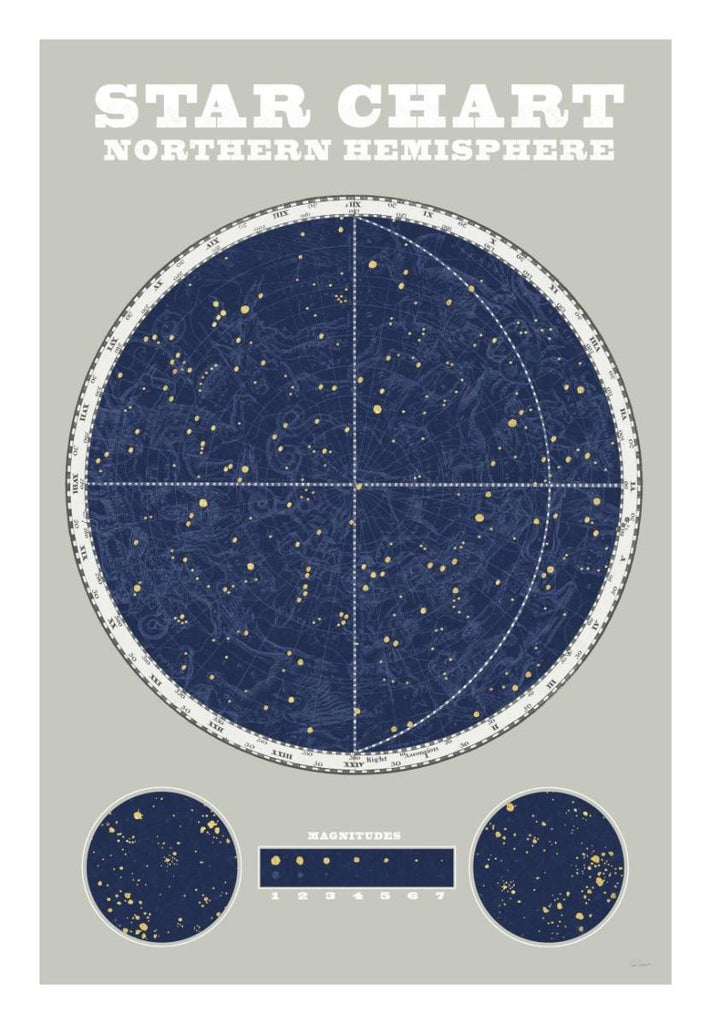 Northern Star Chart Blue Gray -Paper Art-18X26