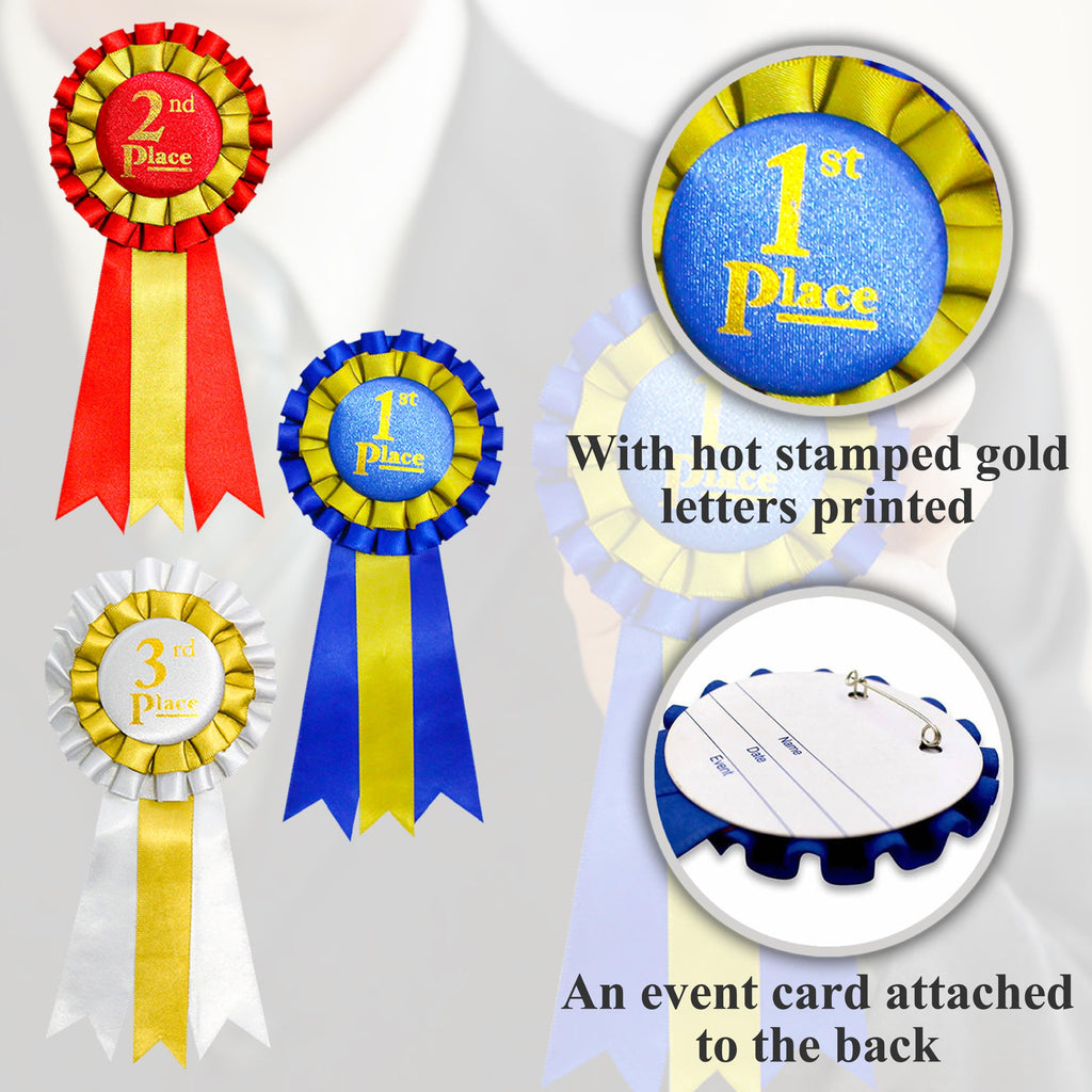 Premium Award Ribbons Blue,Red,White - 1st, 2nd, 3rd Place - 1 Set (3 Ribbons) - First Second Third Place Winner Ribbons