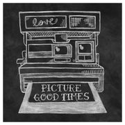 The design is inspired by a retro polaroid aesthetic, suitable for nostalgic decor.