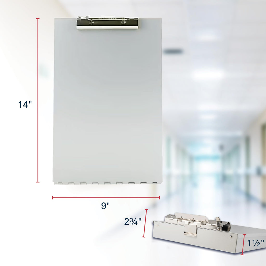 Declutter Your Desk At Office Or Home With The Help Of High Quality Saunders Aluminum Cruiser-Mate Storage Clipboard. The Durable Quality Of Paper Board Comes From Recycled Aluminum Material. Use Of 60% Post-Consumer Waste In The Manufacturing Of This Clipboard Offers Longevity Without Wastage. This Storage Clipboard Comes With Dual Storage Trays That Help In Sorting The Important Documents For The Entire Day. The Compact Storage Tray Provides Ample Of Space For Keeping The Stationary At One Place. Two Storage Compartments Offer A Total Of 1'' Capacity, Upper Storage Tray Holds 7/16'' Capacity And The Strong Clip Holds 1'' Of Paper With Ease. Stationary Clipboard Provides Smooth Surface For Easy Scribbling. Aluminum Clipboard Is Ideal For Use In Industrial, Transportation, Medical, Public Safety, And Government Office Professionals.