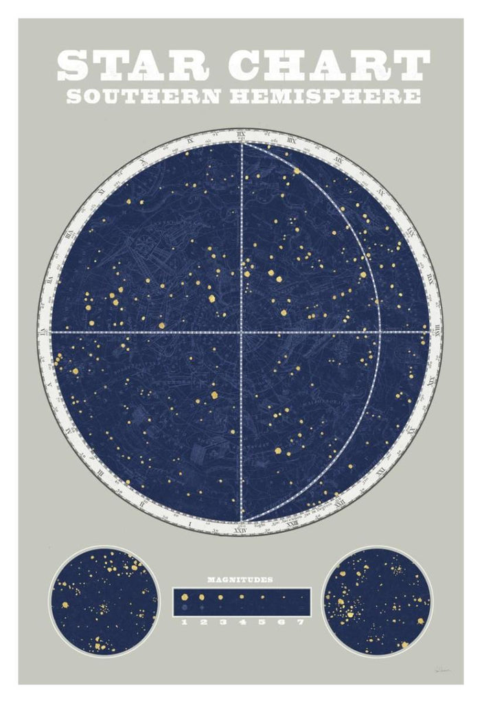 The Global Gallery Southern Star Chart measures 14 x 20 inches.