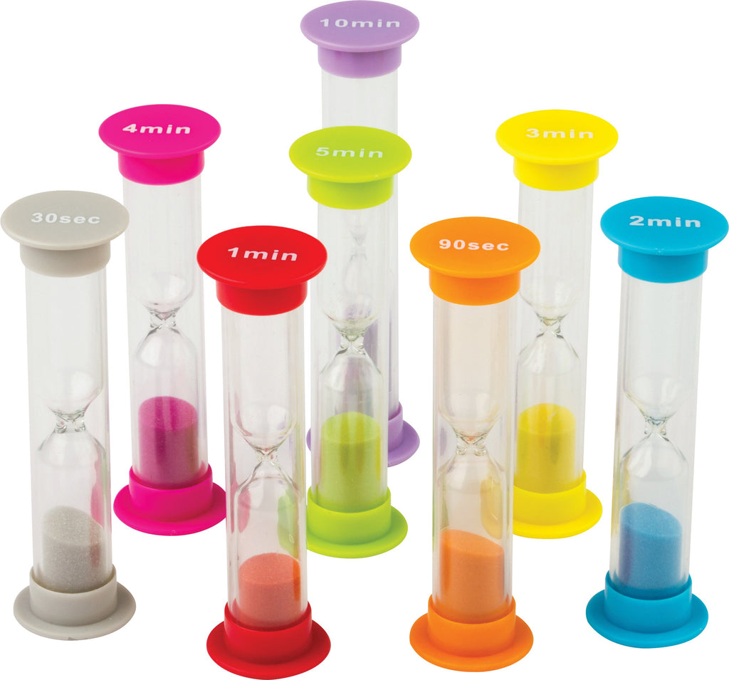 This pack includes timers for 30 seconds, 1 minute, 90 seconds, 2 minutes, 3 minutes, 4 minutes, 5 minutes, and 10 minutes.