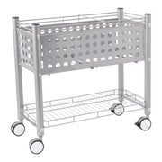 The file cart is constructed from durable alloy steel and wire, ensuring long-lasting use.