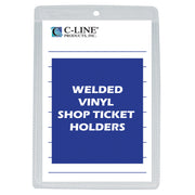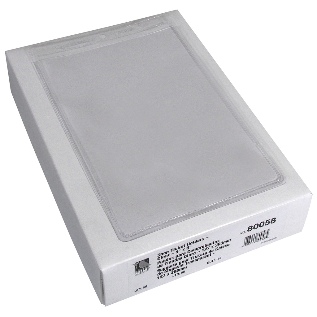 Sturdy And Economical, These Vinyl Shop Ticket Holder Keeps Job Tickets, Work Orders, Production Schedules, Inventory Cards And More Secure And Protected. Great For Two Sided Documents Because Both Sides Of These Strong Vinyl Holders Are Clear. Welded, Non-Rip Seams Hold Up In Even The Roughest Environments. Punched Hole At Top For Convenient Hanging. 5 X 8 Size. 50/Bx.