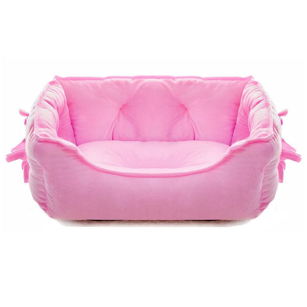 Feature: 1.The exterior of this dog cushion bed has a soft short plush fabric that is comfortable to the touch and can also be used by sensitive skin dogs and newborn pets. 2.The bottom of the oxford cloth is waterproof and moisture-proof. Filled with PP cotton, this warm dog bed provides good sleep for pets. 3.With the fine workmanship, this dog couch fabric is durable and cozy, which can keep your pet warm in cold weather. 4.This cozy dog sofa is machine washable and easy. The cute bow design makes this kennel even more cute. 5.These puppy beds for girls are suitable for small and medium dogs and cats. For example, Teddy, Shih Tzu, Yorkshire Terrier, Pomeranian, etc. Size Chart: Size S: Length: 18.9'' Width:15.0'' Height:7.1'' Size M: Length: 22.8'' Width:15.7'' Height:8.7'' Package Includes: 1 x Pink Dog Bed