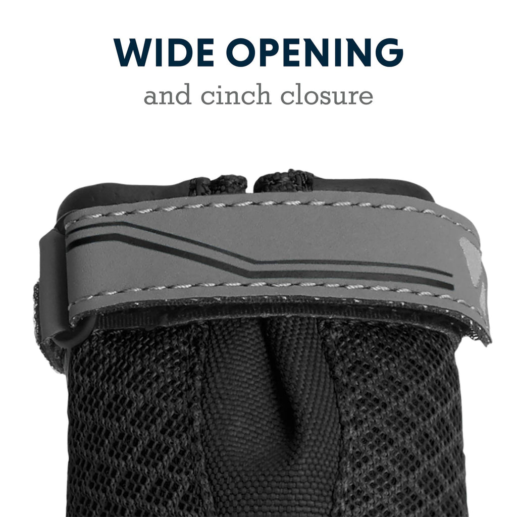The Ruffwear Grip Trex dog boots set the standard in paw wear for dogs who hike, bike, run, or explore the great outdoors with their humans. These high-performance boots feature a rugged and resilient Ruffwear-designed Vibram outsole for exceptional grip. Breathable mesh upper keeps dirt and debris out while keeping them cool and comfortable. The closure system combines hook-and-loop with hardware and cinches around the narrowest part of the dog's leg, providing a secure fit so they can forge ahead with confidence. Available in sets of 2 boots and 4 boots.Just as you would with your own gear, check the closure system and adjust the fit as needed 15 minutes into your activity and throughout the adventure.Washing instructions: Secure fasteners, wash in cold water with mild detergent on a gentle cycle, and air dry.