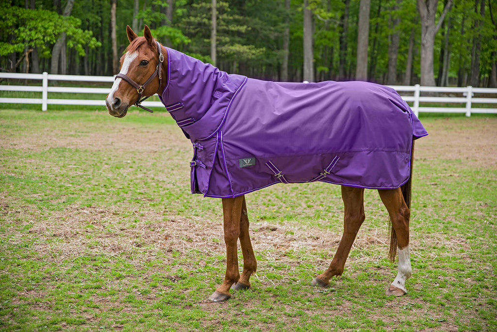 This turnout blanket is classified as a heavy weight blanket, with a fill weight of 360 grams.