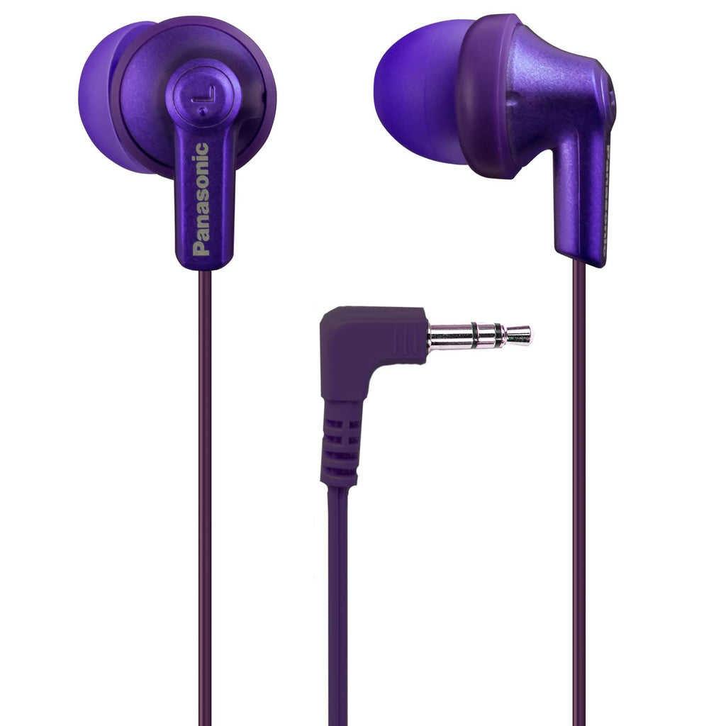 The Panasonic RP HJE120-VA ErgoFit In Ear Earbuds Headphones are the perfect combination of style, comfort and most of all, high quality sound With three included sets of earpads (SML), youAll get a custom, comfortable fit that wonAt slip out choose from fourteen vivid color options with color matching earbuds and cord to best complement your style and mood Large 9mm drivers with neodymium magnets along with a wide frequency response and smart ergonomic fit deliver dynamic, crystal clear sound while helping to keep out unwanted outside noise The 36 feet cord threads comfortably through clothing and bags