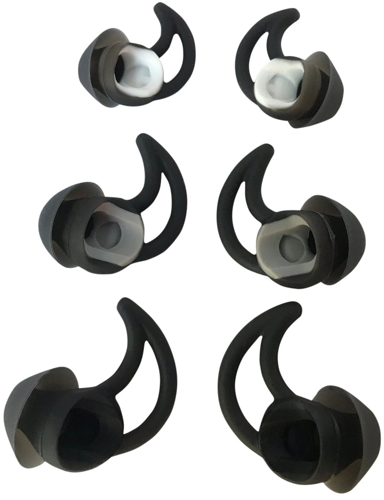 CentralSound Brand Black Replacement Ear Buds for Bose SoundSport Truly Wireless In-Ear Headphones. Includes 3 Pairs (Small, Medium, and Large). Extra durable material results in long-lasting use. Patented CentralSound brand nylon molding produces noise isolation like no other ear tips on the market. 100% Satisfaction Guaranteed or your Money Back.