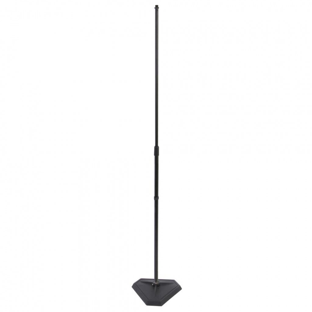 Descriptions:This Revolutionary Threadless Stand Brings An End To The Seemingly Eternal Chore Of Screwing Your Microphone Stand Into Your Base. In One Swift Motion, Just Push Down And Turn The Shaft One-Quarter Clockwise To Lock, Or Push Down And Turn One-Quarter Counter-Clockwise To Remove. The Uniquely Shaped 9Lb Base On This Patented Item Means More Room For Foot Placement. The Low Profile Design Makes For An Especially Stable Stand.