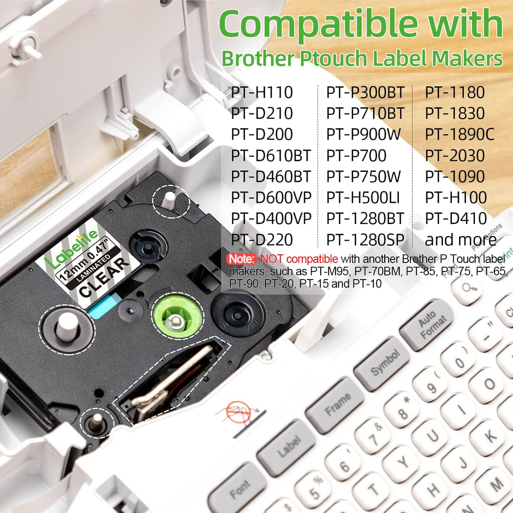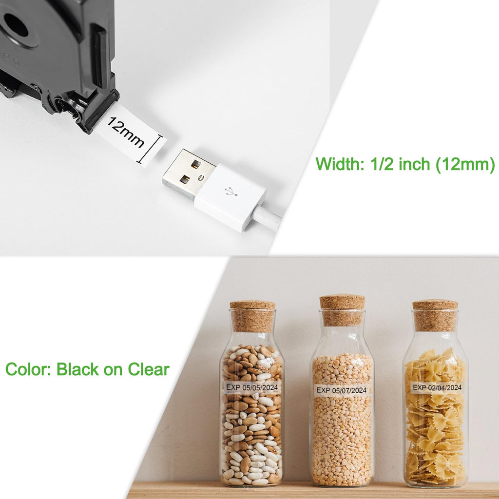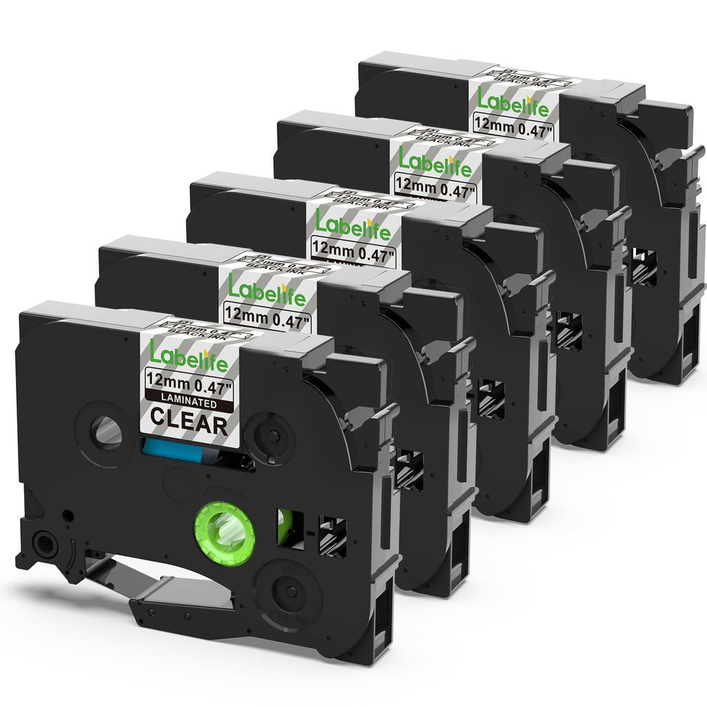 Labelife 5-Pack TZe TZ Tape 12mm 0.47 Laminated Clear Label Tape TZe-131 Replacement for Brother Label Maker Tape Clear TZe131 T