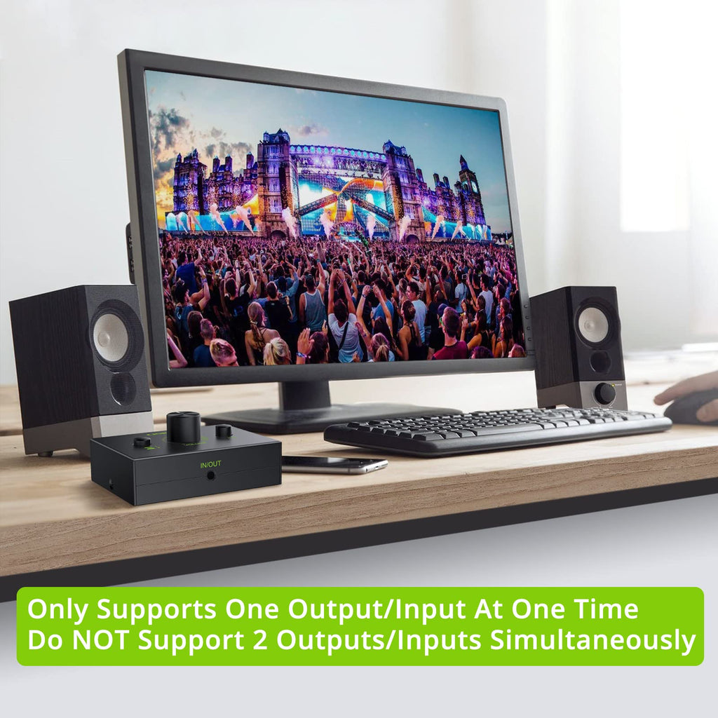 Easy installation and simple operation. Only need to lightly press to mute the device; very useful under special conditions. Plug and play; No power supply and other software required; Won't affect sound quality. Analog signal maximum support 2V p-p input and output. Input and output frequency range: 20Hz ~ 20KHz. Use standard audio cable, input transmission distance up to 8 meters, output transmission distance up to 8 meters. Super small size; Compact and super mini size; Easy to place and suitable for your desktop and office.