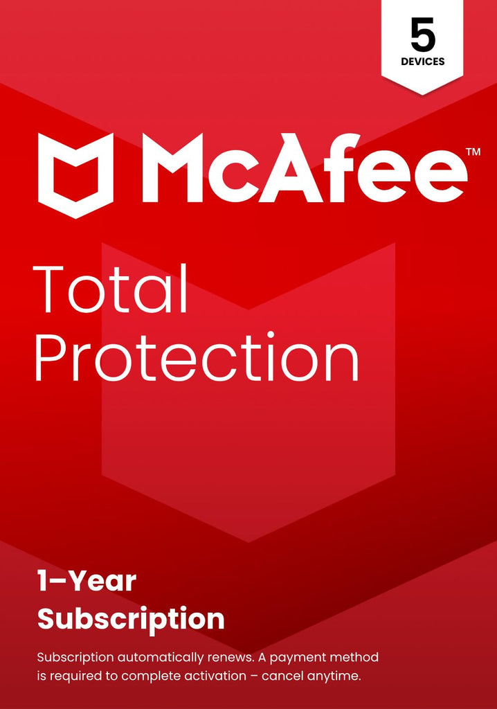 McAfee Total Protection for 5 devices provides essential protection for your personal info and privacy, so you can enjoy life online. It includes antivirus, Text Scam Detector, identity monitoring, Secure VPN, and more. Experience award-winning antivirus protection, continuously updated to safeguard your devices against the latest threats. Our AI-powered real-time PC protection prevents and removes viruses, malware, ransomware, and other online threats. Our AI-powered Text Scam Detector automatically detects and blocks risky links in text messages, emails, and social media posts - even if you accidentally click on them. Protect your online privacy with our no-log Secure VPN. It turns on automatically for unsafe Wi-Fi networks, safeguarding your personal info, passwords, credit card numbers, and more. Get alerted up to 10 months sooner than similar services if your personal information is found in a data breach. McAfee Identity Monitoring gives you the advantage of earlier detection and quick response to potential identity theft. Browse the web confidently with our color-coded safety ratings for search results and social media links. Well also block dangerous downloads that may contain viruses or malware. Easily create, store, and manage strong, unique passwords for all your online accounts. Our password manager also auto-fills your login info, making it simple and secure to access your accounts.