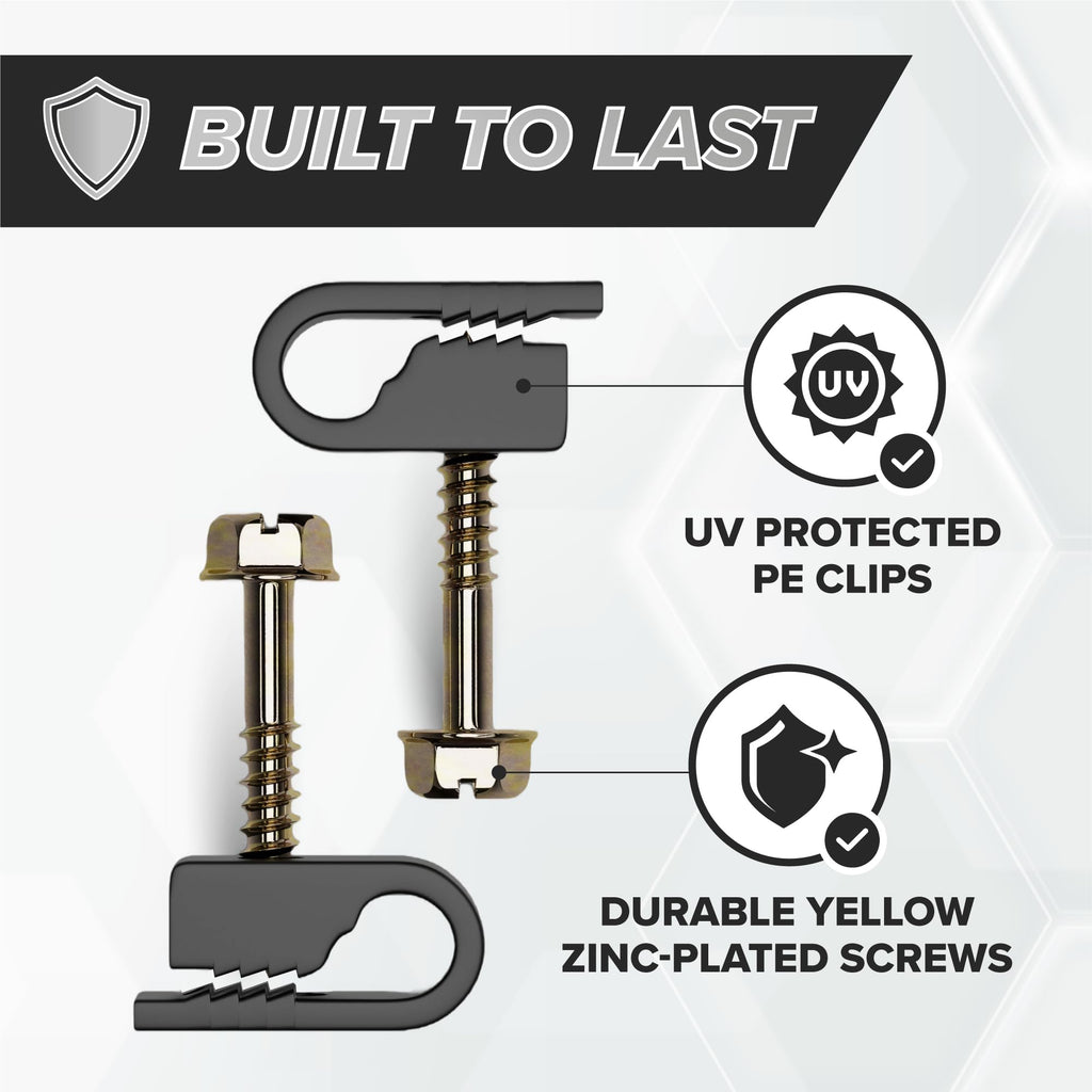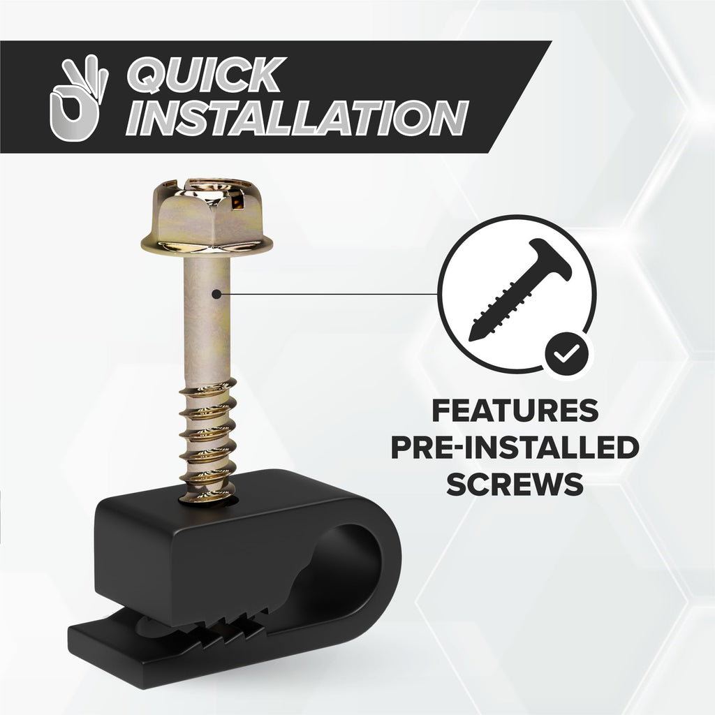 THE CIMPLE CO - Single Coaxial Cable Clips, Cat6, Electrical Wire Cable Clip, 1/4 in (6 mm) Screw Clip and Fastener, Black (10 p