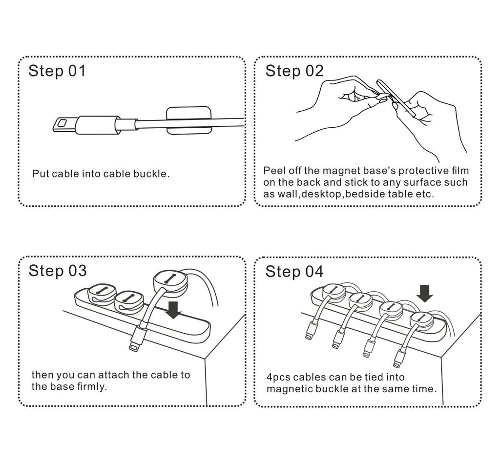 Yugoo 2 pack magnetic cable holder, white Tips: Do not fit the cables' diameter beyond 4mm. Removable adhesive works in plastic, wood, glass and metal surfaces, keep cords on a desk, give you a neat and tidy environment Package Including: 1 x White Magnetic Cable Holder, 8 Magnetic Buckles