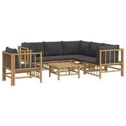 Vidaxl 7 Piece Patio Lounge Set With Soft Dark Gray Cushions, Bamboo, Outdoor Furniture With Practical Table, Comfortable Cushioned Seats, Flexible Configurations