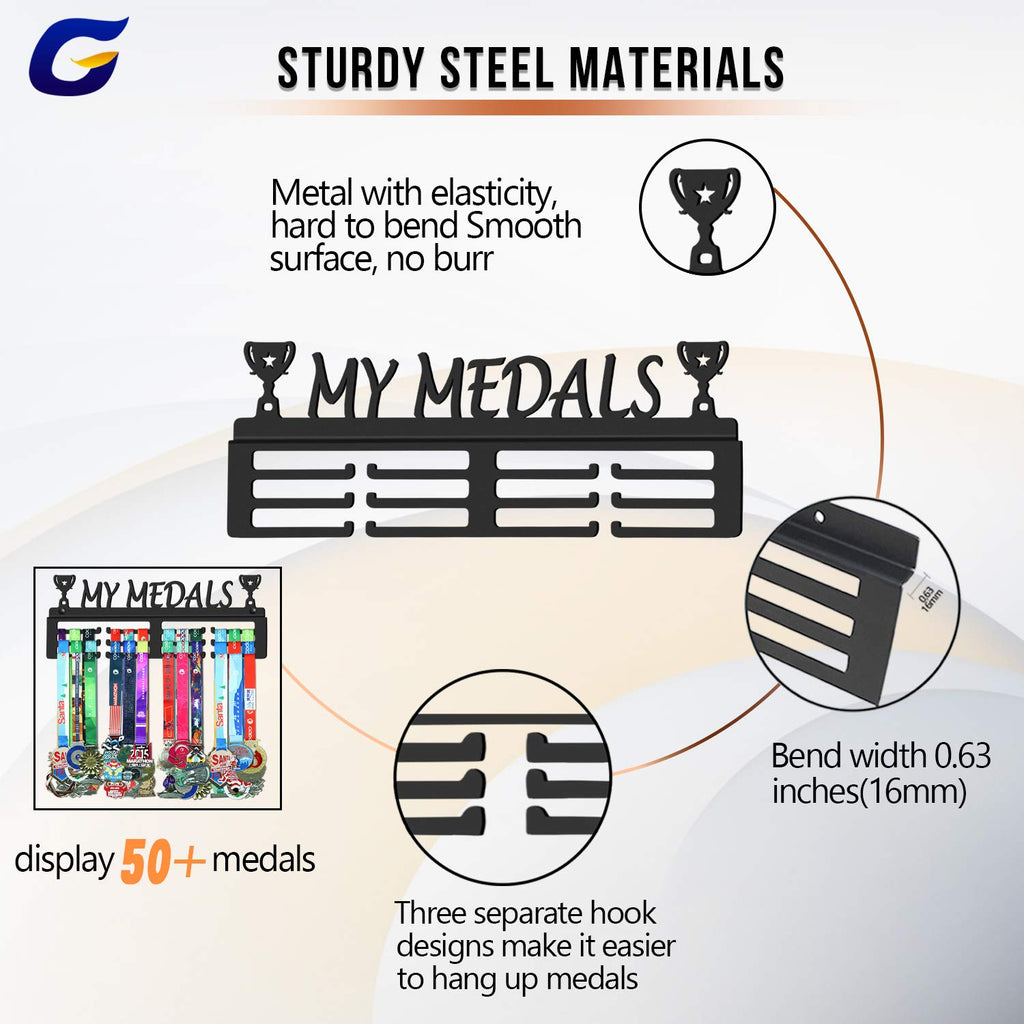 Excellent Medal Hanger from GENOVESE, Metal Matte Black Color, Professional design for My Medals,hang over 50 medals, One is good enough CREATE YOUR WALL OF FAME Show your medals and success with pride Don't hide your hard work, memories and success in a forgotten drawer, a dusty old box or under your bed. Display them with pride to remind yourself how awesome you are. You train hard and believe in yourself. Every single step of your way has been worth it. Now your success deserves to be shown in a special place. We have designed this medal hanger for you, so you can proudly exhibit your achievements and keep our awesome story going. PERFECT FOR MANY PLACES Decorate the wall, Keep the wall from monotonous Suitable for various places: living room,study,corridor,hall, kids bedroom,lounge,school,gymnasium. KEEP MOVING AND TRAINING High quality steel We are so confident on our high quality steel material, metal steel with elasticity and hardness. It's not as simple as you know about the steel, it can carry over 15 KG without bending. We believe that you are the best, so you should be satisfied only with the best! READY FOR YOUR NEXT MEDALS?