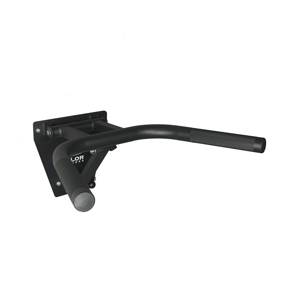 The Valor Fitness DP-2 Folding Wall Mount Dip Station is the perfect addition to any home or light-commercial gym looking to add functionality while saving space. This heavy-duty dip station mounts to the wall and folds downward when not in use to maintain a small footprint. Constructed of steel for strength and durability, the DP-2 has a matte black, lightly knurled finish to enhance grip and withstand constant use over time. The tapered design makes this ideal for fitness environments with multiple users of different skill levels and allows them to target different muscles. Usable grip widens from approximately 17at its narrowest point to 25at its widest. When folded down against the wall, the DP-2 measures 23x 25with the back plate that mounts to the wall measuring 11x 11 . The safety lock pin secures the Dip Station in place during use to ensure maximum safety for the user, while also locking in place when folded against the wall to save space. The grip handles measure 1.75in diameter, and can handle up to 350 lb. The Valor Fitness DP-2 Folding Wall Mount Dip Station is meant for home and light-commercial gym use and includes mounting hardware in the purchase.