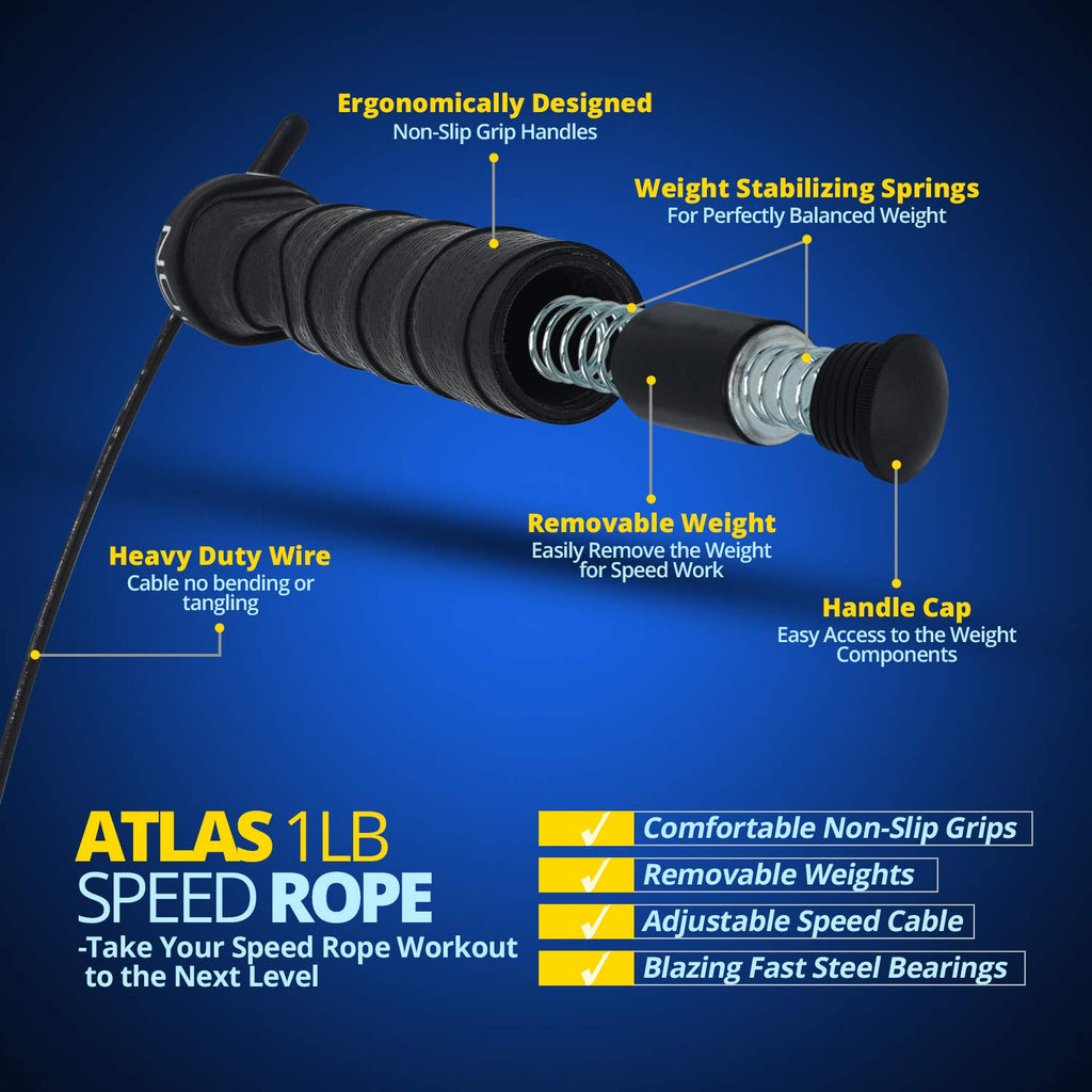Weighted Jump Rope for Women & Men - 1 Pound (1LB) Adjustable Heavy Speed Jump Rope Handles with Removable Weights, Cross Training, Boxing.