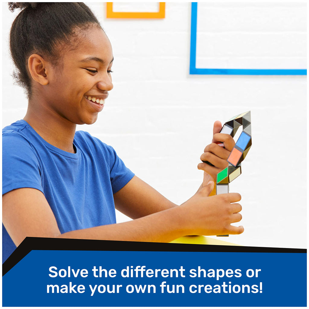 The Rubiks Twist is a puzzle toy with 24 wedges identically shaped like prisms. The wedges are connected, by spring bolts in such a way that they can be twisted and turned all day long, but not separated. Through this twisting, the Rubiks Twist can make a ball, a dog, a duck, a rectangle, a snake, and many more imaginative shapes and figures. Allow your imagination to run wild and create a wide variety of shapes and figures.