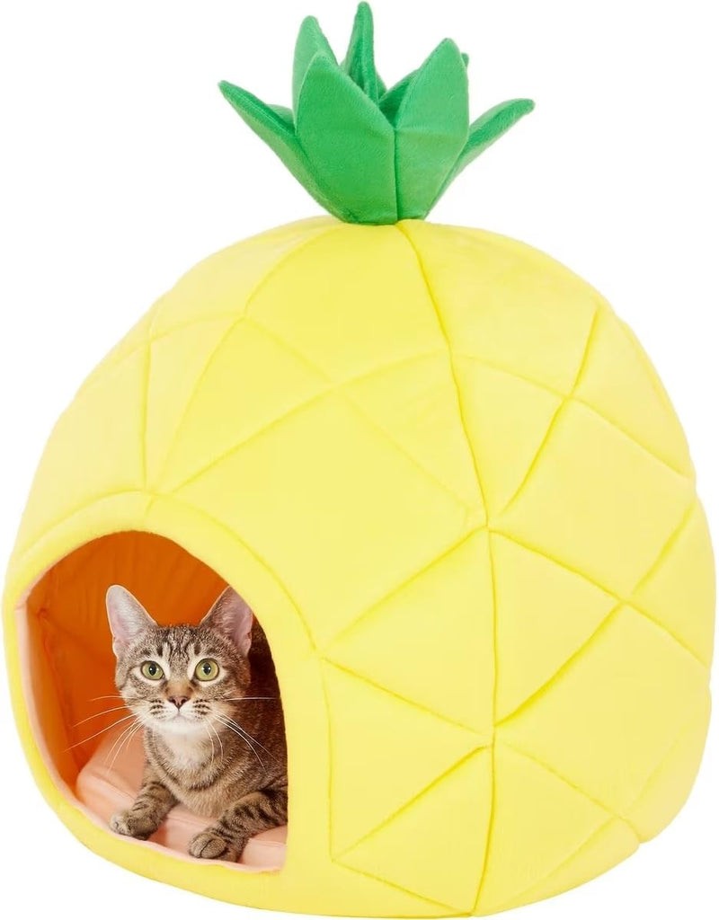 Fh034 Brand New Pineapple Pet Bed House Home In Yellow - Small Plush Soft Cushions Perfect For Small Dog Or Cat. Size 16L' X16W' X20H.