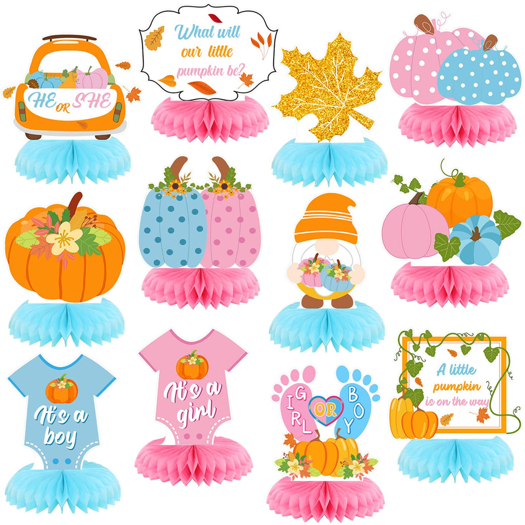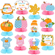 12 Pcs Fall Thanksgiving Gender Reveal Decoration He or She What Will Our Little Pumpkin Be Honeycomb Centerpiece Autumn Table D