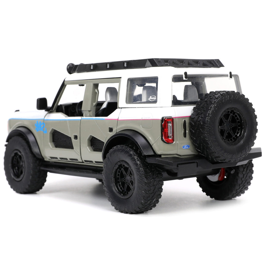Brand New 1/24 Scale Diecast Car Model Of 2021 Ford Bronco Gray And White With Matt Black Hood With Roof Rack M2 Motoring Just Trucks Series Die Cast Model Car By Jada. Real Rubber Tires. True-To-Scale Detail. Officially Licensed Product. Has Removable Four Doors. Made Of Diecast With Some Plastic Parts. Manufacturer'S Original Unopened Packaging. Detailed Interior, Exterior, Engine Compartment. Dimensions Approximately L-7.75, W-3.875, H-3.75 Inches. Please Note That Manufacturer May Change Packing Box At Any Time. Product Will Stay Exactly The Same.