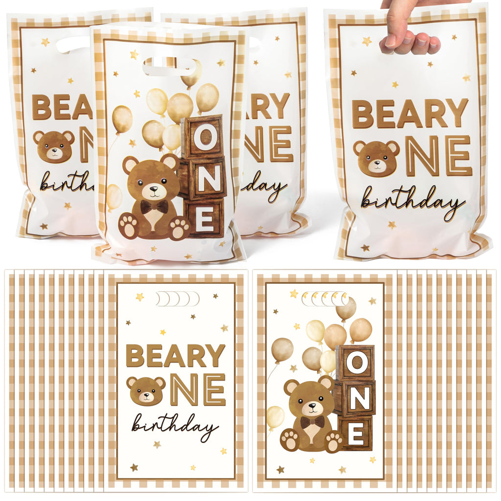 Beary One Party Favor Bag My 1st Birthday Themed Design Sweet Goody Candy Treat Gift Bags Party Decorations for Kids Birthday Supplies Package List Beary One Party Favor Bag*50 Material: PE material Color: As shown on the picture Size:6.4 x 10.1 inches (16 x 26 cm) Multi-Purpose: Beary one party favor bags are suitable and decorative for most occasions such as birthday parties, family gatherings or any celebration.