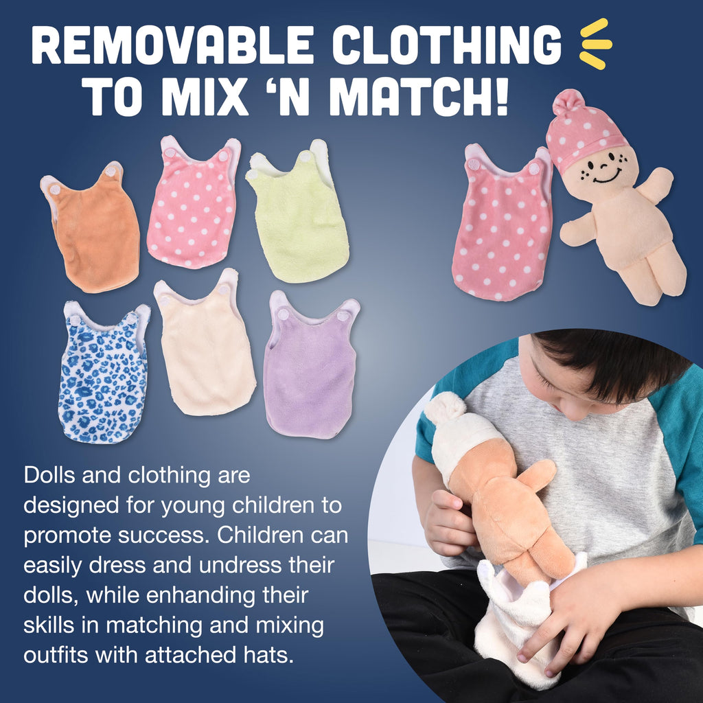 Give Your Child The Cuddliest Companions With This Basket Of Babies Plush Dolls. With Their Super-Soft Bodies, These Six Culturally Diverse Babies Promote Hugging, Squeezing And Nurturing Role Play. The Six Babies Have Permanently Affixed Caps That Match The Removable, Texturally-Inviting Sack Dresses. Theyre Perfect For Little Ones To Dress And Undress, Making For A Fun And Creative Playtime They Help Provide Matching, Nurturing, And Fine Motor Skills To Help Them Throughout Life. The Diversity Of The Babies Encourages Confidence, Empathy, And Inclusion From A Young Age. Each 10'' Doll Is Happily Nestled In Their Cozy, 12Wide Take-Along Basket.