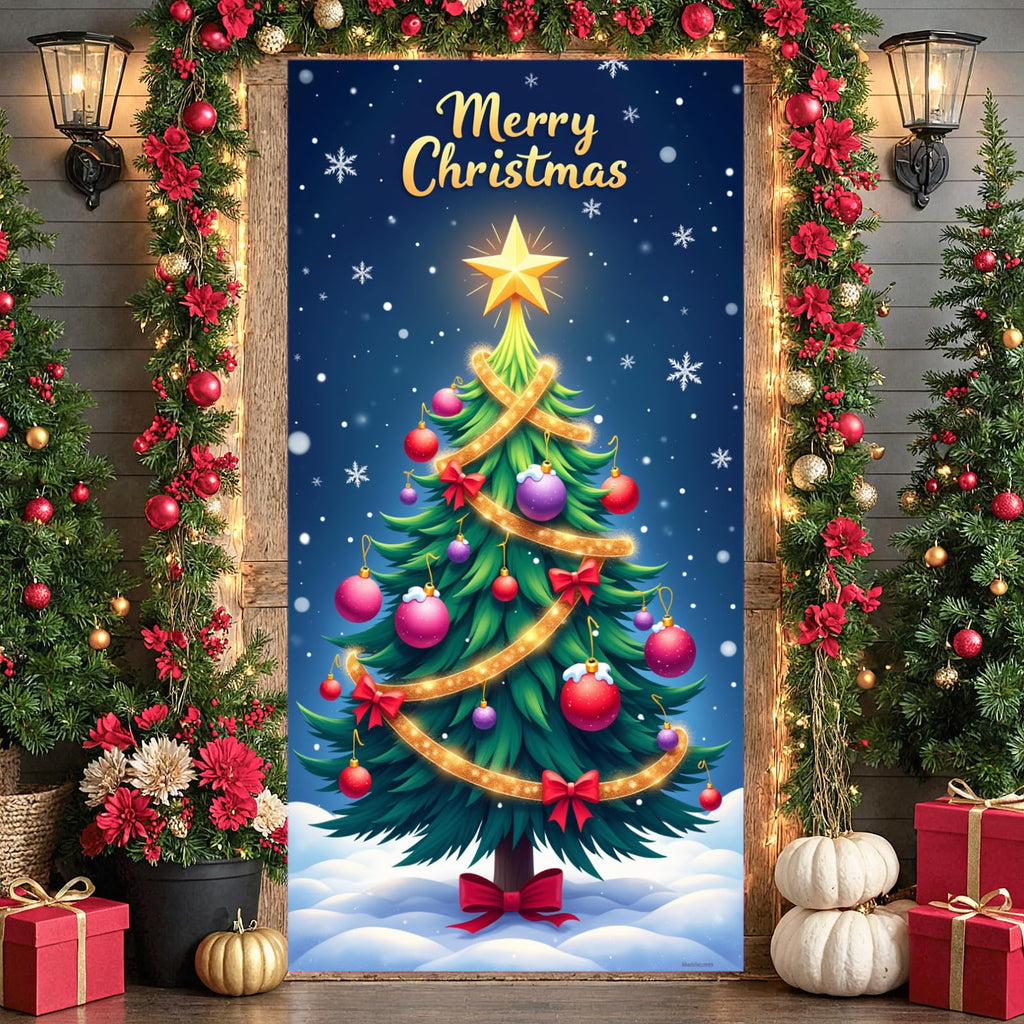 Product Specifications:Material: PolyesterDimensions: 180 x 90 cm ( 70.9 x 35.4 in)Package Includes: 1 x BannerPackage & Wrinkle Notice:The blue Christmas tree door banner is shipped folded. slight wrinkles may appear upon arrival. These can be smoothed out:(1) Rolling tightly into a cylinder-creases should fade within 3-4 days.(2) Ironing the back on low heat. Avoid direct contact with the printed front or water to prevent damage.The image is printed with high-resolution technology for clear and vivid visuals.Attention:Please allow a slight size deviation of 1-3 cm due to manual measurement.Slight color variations may occur due to different monitor settings.